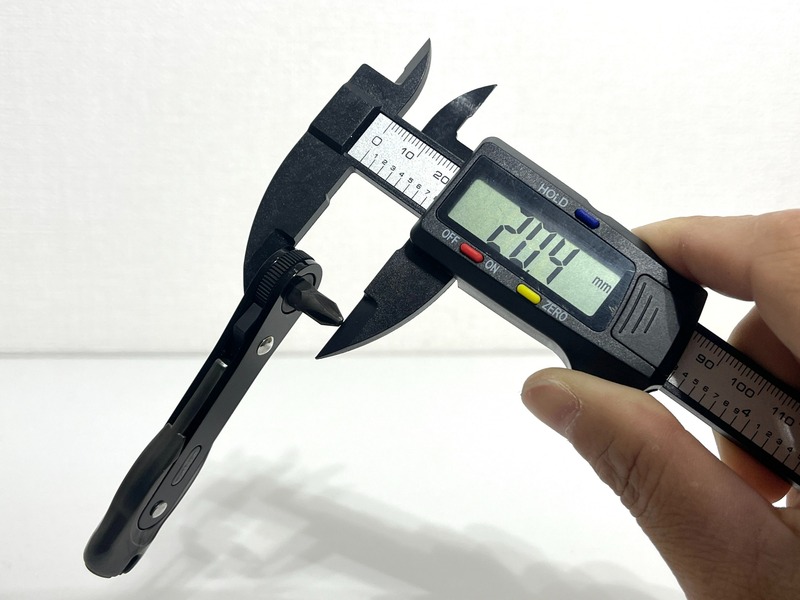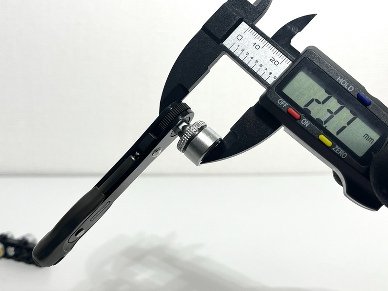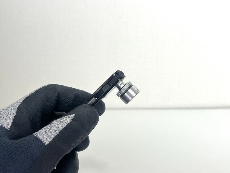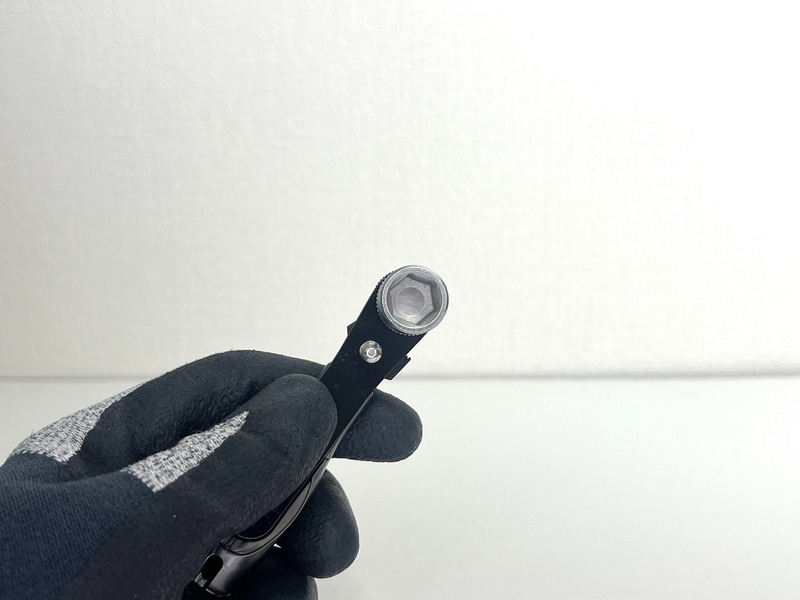 ラチェットドライバーとしてもかなり薄いのですが、ソケットをつけた時もかなり薄いです。ソケット使用時で約24mmという薄さは驚異的。